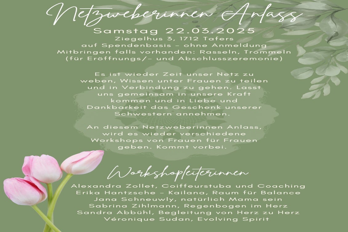 Hier findest du das Jahresprogramm bis zur Sommerpause 2026. Trage dich gerne ein, wenn du an den freien Abenden einen Workshop leiten möchtest. Neben diesen festgelegten Termin stehen die Räume natürlich an anderen Daten für Netzweberinnen-Anlässe zur Verfügung. Hier kann man sich gerne direkt bei Sonja melden.